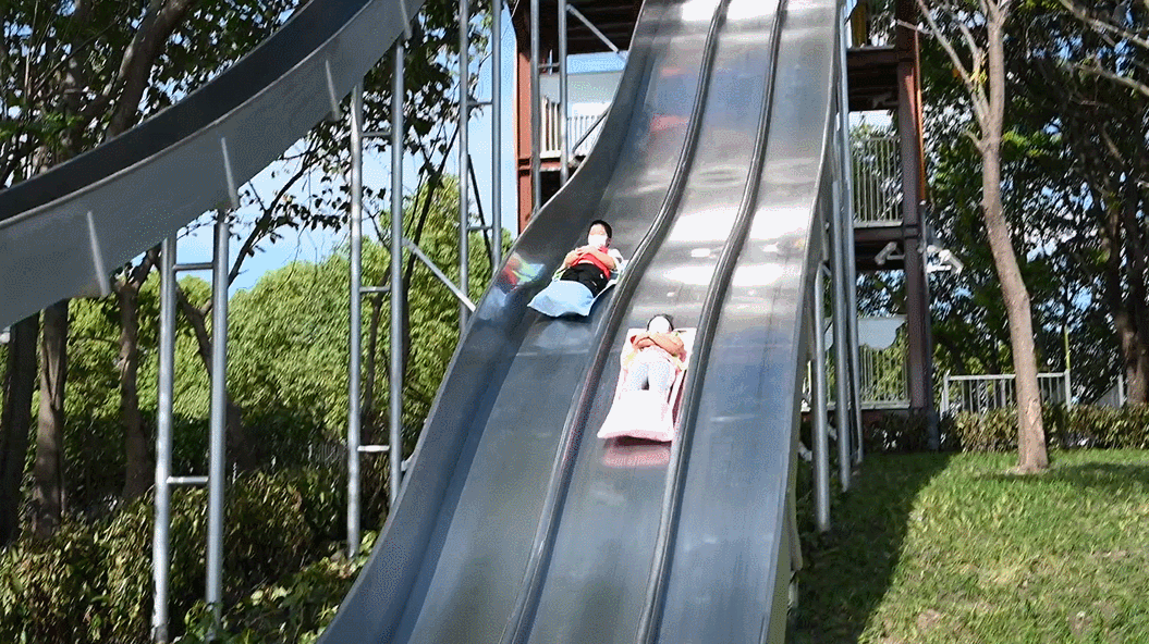 也可以在长达20余米的滑道上